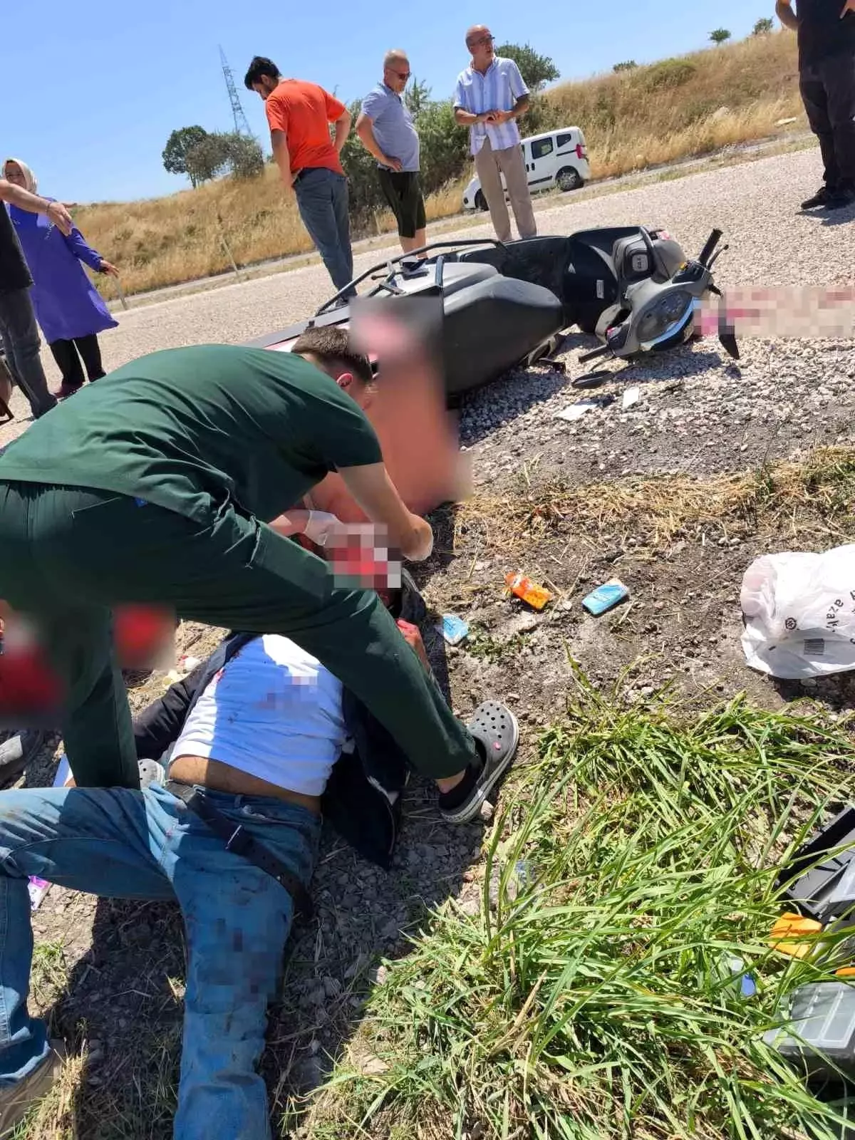 Balıkesir’in Gönen ilçesi mıcırlı yolda motosikletin denetimden çıkması sonucu 2 kişi yaralandı.