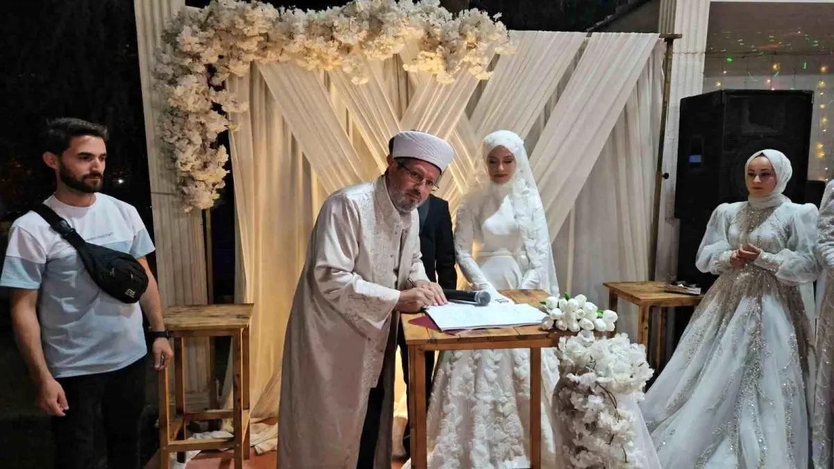 Balıkesir’in Sındırgı ilçesinde Hasan Küçük ile Beyza Eren çiftinin nikahlarını ilçe müftüsü Sami Türkel kıydı. Çiftin ortak kararıyla gerçekleştirilen müftülük nikahı, farklı bir atmosfer oluşturdu. Nikah sonrası konuşan İlçe Müftüsü Sami Türkel, “Evet büyük bir sarsıntı yaşadık. Sarsıntı sonrası gençlerimizin nikahlarına daima birlikte şahitlik ettik. İlçe müftüsü olarak ben de nikahlarını kıydım. Rabbim güzel, mübarek eylesin. Rabbim bir daha bizlere bu türlü acılar yaşatmasın, daima hoşluklar daim eylesin inşallah. Müftü nikahlarının tercih edilmesi hem resmi nikah manasında hem de dini nikah manasında dualarıyla sohbetleriyle hoş bir ortam oluşmuş oluyor” dedi.