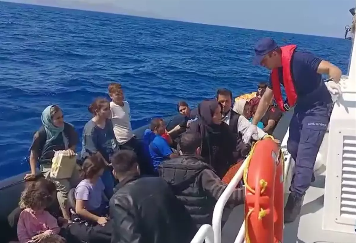 Lastik bot içindeki 14’ü çocuk 32 sistemsiz göçmen, Kıyı Güvenlik grubunca kurtarıldı.