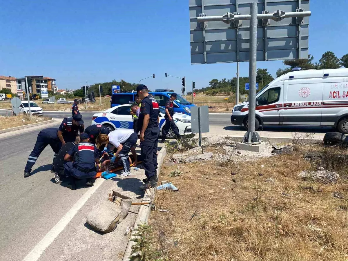 Çanakkale’nin Ayvacık ilçesinde bir araba seyir halindeki motosiklete çarparak takla attı. Kazada motosiklet şoförü ağır yaralanırken ile araba şoförü hafif yaralandı.