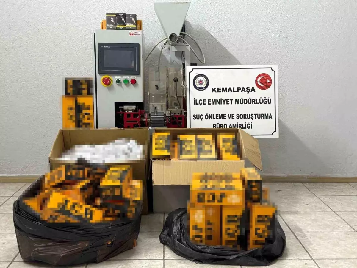 İki farklı adrese eş vakitli düzenlenen baskınlarda, 28 bin 800 adet bandrolsüz boş makaron, 20 bin 620 adet doldurulmuş sigara ile 1 adet tütün sarım makinesi ele geçirildi.
