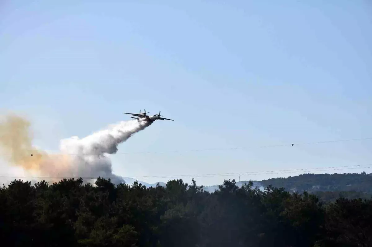 Dün öğlen saatlerinde Yakaköy mevkiinde tarım yerinde başlayan daha sonra ormanlık alana sıçrayan yangın, rüzgarın tesiriyle büyüdü. İzmir Orman Bölge Müdürlüğü’ne bağlı 8 uçak ve 17 helikopterle havadan, 22 arazöz, 7 su ikmal ve 5 dozerle karadan müdahale ederken meydana gelen yangında birinci belirlemelere nazaran 3 konut yandı. Orman yangınına, çatı tamiratının sebep olduğu, olayla ilgili 3 kişinin gözaltına alındığı bildirildi.