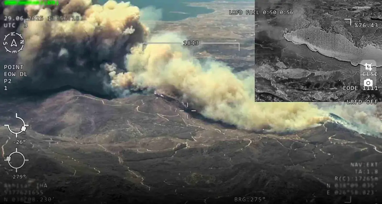 Yangını denetim altına almak için havadan ve karadan müdahale sürüyor. – İZMİR