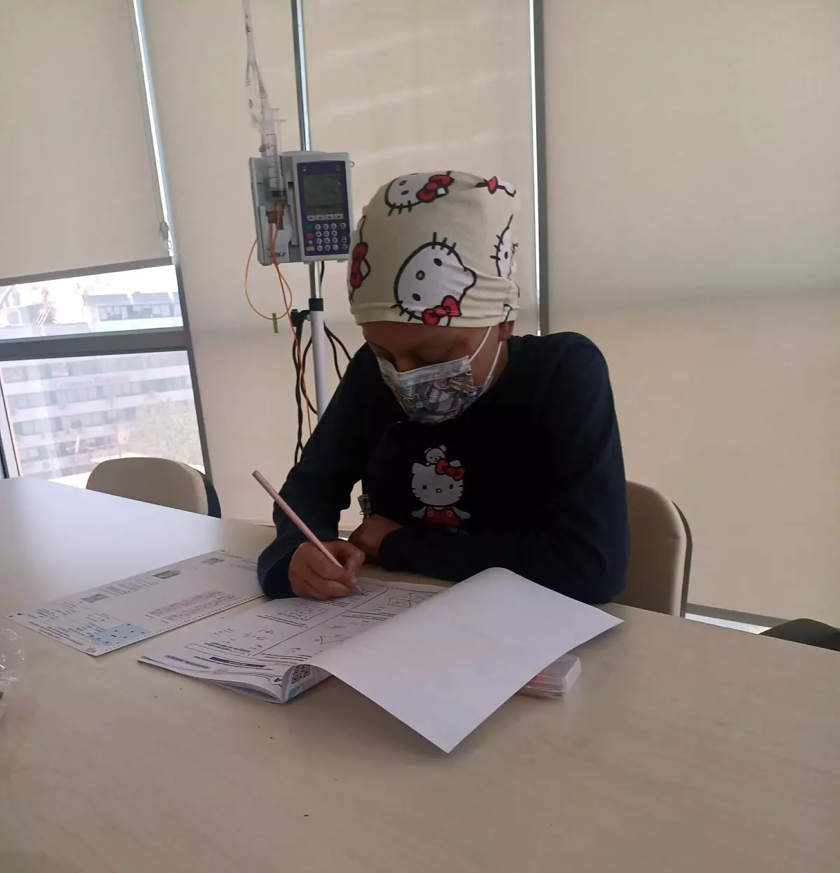 Konak ilçesinde yaşayan ve Milli Eğitim Bakanlığı (MEB) tarafından 8’inci sınıf öğrencilerine yönelik düzenlenen LGS-2025 sınavı adaylarından Hatice Badem, imtihan heyecanını tedavi gördüğü hastanede yaşadı. Geçen ocak ayından bu yana lösemi tedavisi gören Badem, soruları gözetmenler eşliğinde kendisi için ayrılan odada yanıtladı. Hatice Badem’in annesi 3 çocuk annesi Fatma Badem, öteki kızı Hatune’nin de 3 yıl evvel lösemi tedavisi görüp, sıhhatine kavuştuğunu belirterek, “İkizinin ateşi vardı, karnı ağrıyordu. Bünyesi daha hassas olduğu için çabuk hasta oluyordu. Behçet Uz Hastanesi’nde lösemi teşhisi konuldu. Hatune sıhhatine kavuştu. Ortadan 2 yıl geçti Hatice’de de tıpkı hastalık çıktı” dedi.